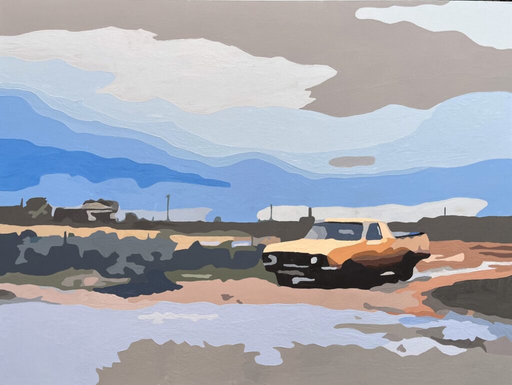 “A vision like a faded polaroid. The hours starting to blend. The dirt road muddy hours after the heavy rain. Too much for the old Datsun to handle.